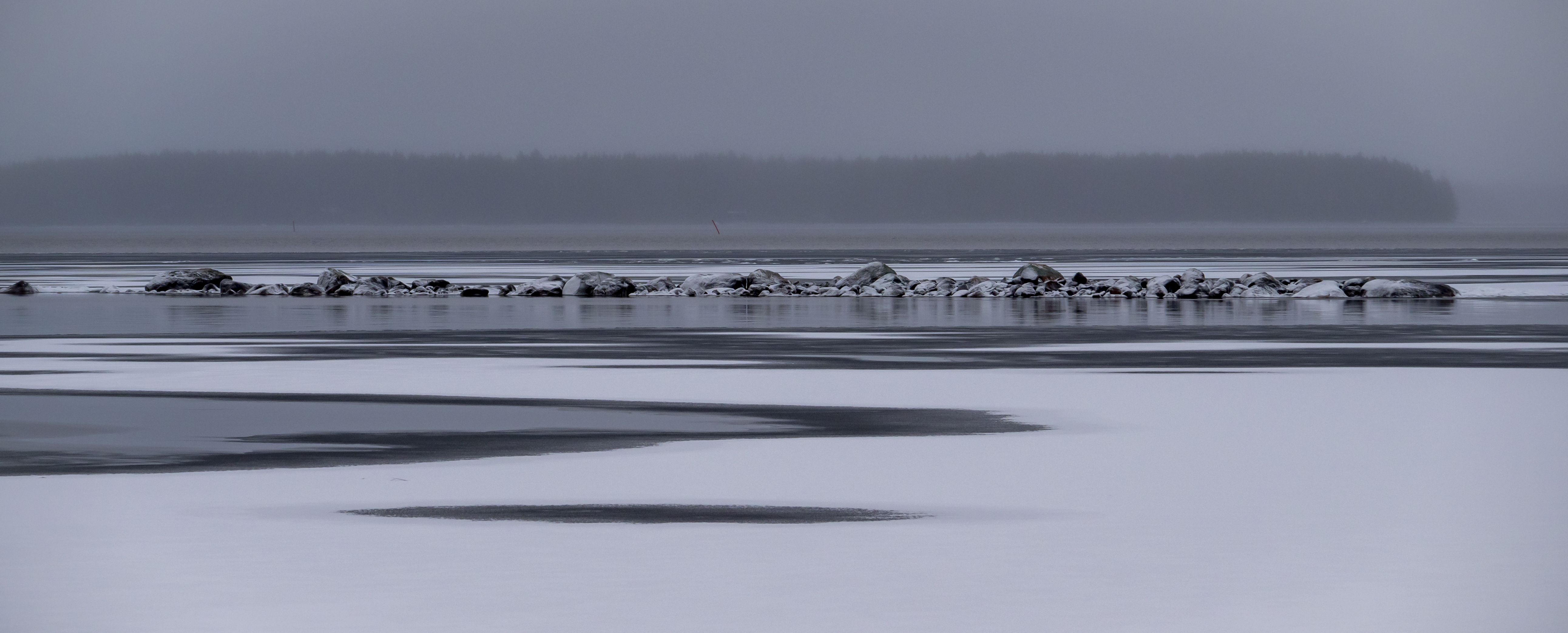Lämpötilan sahatessa jäätymispisteen molemmin puolin, välillä tyvenessä, välillä tuiskussa, syntyy luonnon muovaamaa jäätaidetta. En ole koskaan aiemmin nähnyt järvivesillä viime talven kaltaisia ahtojäitä. Pakkasen saadessa hetkellisesti otetta jo valmiiksi alijäähtyneestä vedestä, rajapintaan muodostuu hienoja jääveistoksia, jotka seuraava lämmin virtaus pyyhkäisee mennessään. Kaikki on niin väliaikaista, hetkellistä ja muuttuvaa. Se, minkä kamera tänään tallentaa, on huomenna jo poissa. Nyt sen keksin: Nämä ovat buddhalaisia talvia! Pitää vain kehittää omaa mielen tyyneyttä tämän äärellä. Oltava liiaksi kiinnittymättä ja kiintymättä. Tottuttava siihen, että kaikki on muuttuvaa eikä mikään pysyvää. Siinä on vielä tekemistä!
