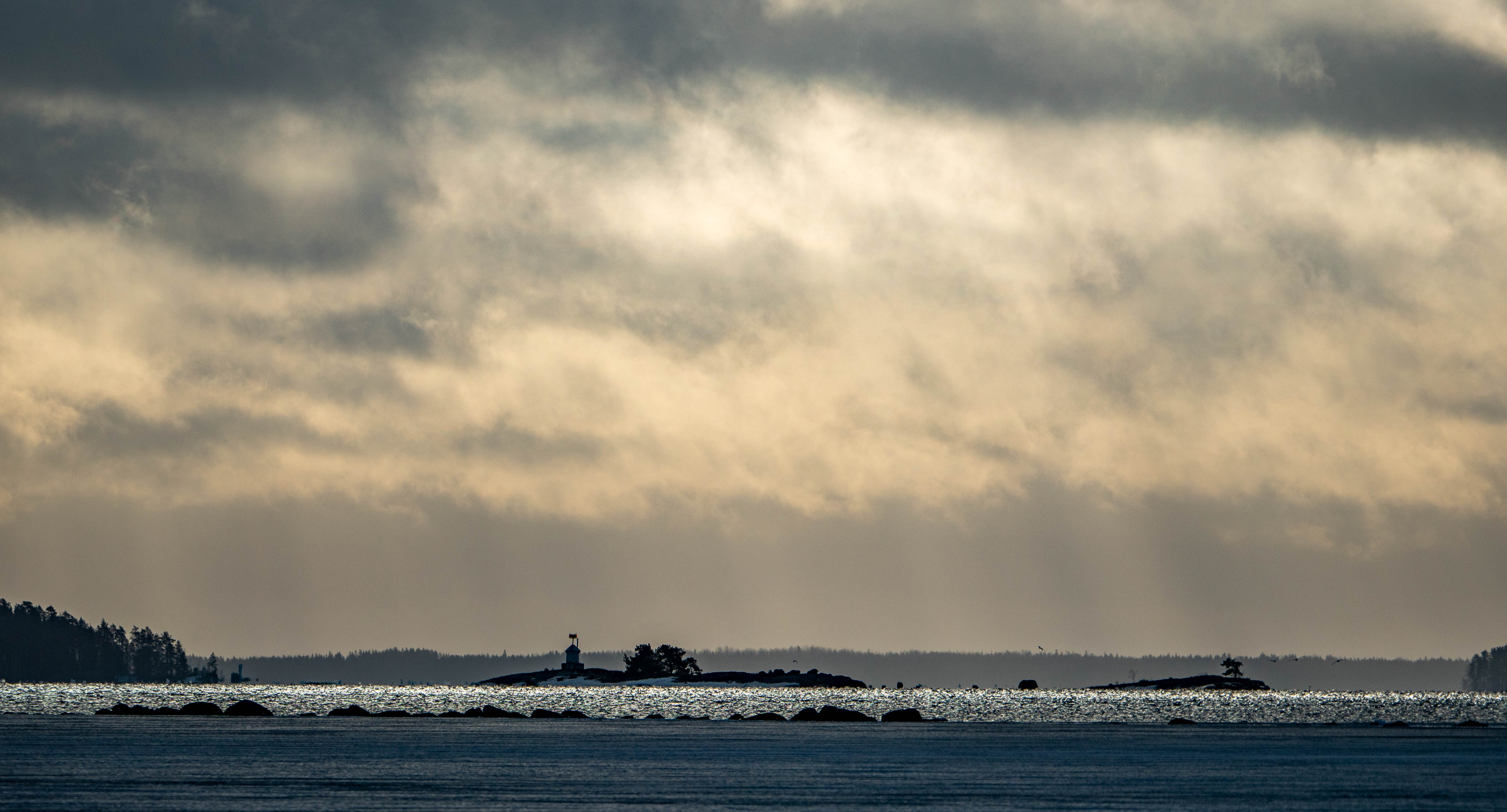 Upea auringonlasku Listingissä ensimmäisenä iltana.