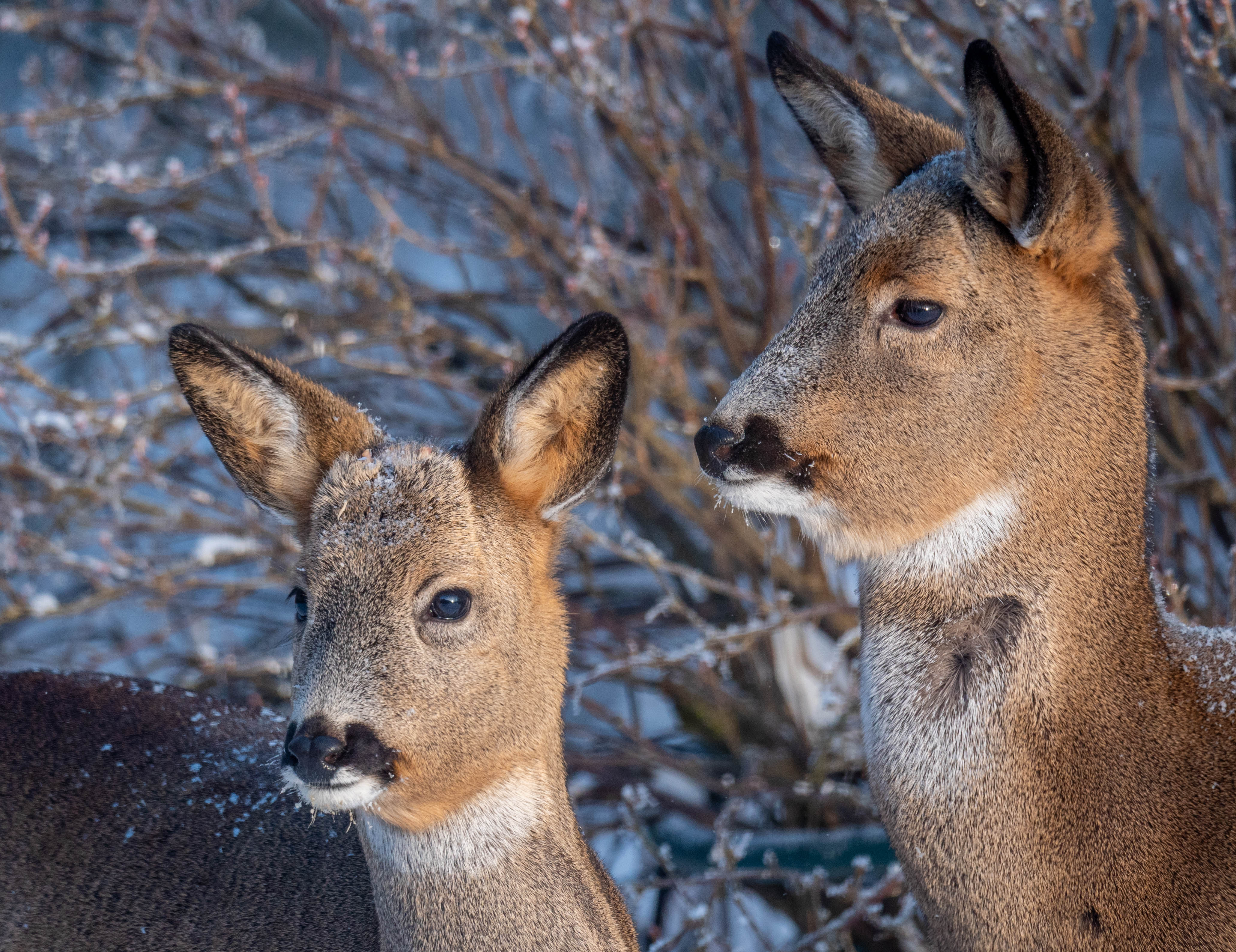 Olen vasta sulamassa huurteisen suokävelyn jäljiltä, kun kauris ilmestyy pihalle, keskellä kirkasta päivää tällä kertaa. Yksi vain. Mietin, onko kyseessä sama vai eri otus kuin viimeksi. Ehkä sama päätellen lähestymisestä, joka on kohtalaisen määrätietoista. Iso osa ajasta kuluu tarkkailuun. On viikonloppu ja ihmisiä liikkuu jäällä kotimme tuntumassa. Ihan vähästä kauris ei kuitenkaan pakoloikkaan ponnahda, vaikka ääniä kuuluu lähettyviltä. Mitenköhän vakiovieraiksi mahtavat ryhtyä?